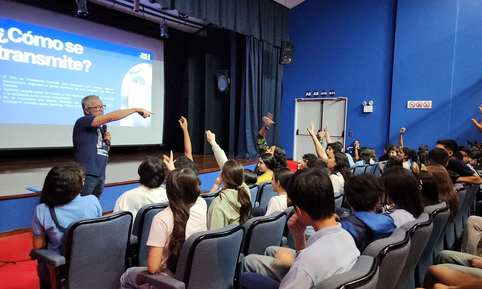 Durante su visita, el Dr. Comegna sostuvo un encuentro con los estudiantes de 2do y 3er año de Media General, tanto de la sección venezolana como de la sección francesa, abordando temas fundamentales como las formas de transmisión del VIH, las poblaciones clave y la importancia de la prevención combinada. Asimismo, se destacó que, según cifras oficiales, en Venezuela existen aproximadamente 110 mil personas que viven con VIH, lo que refuerza la necesidad de promover información clara, empatía y acciones preventivas.
