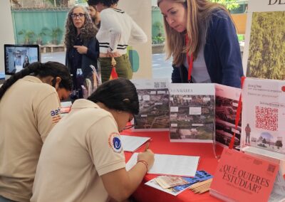 Durante la jornada, los estudiantes de ambas secciones tuvieron la oportunidad de recorrer los distintos stands y conocer de primera mano instituciones públicas y privadas, tanto de carácter nacional como internacional. Cada institución compartió información relevante sobre sus programas, procesos de admisión, experiencias académicas y oportunidades de formación, contribuyendo así a una toma de decisiones más informada sobre su futuro.