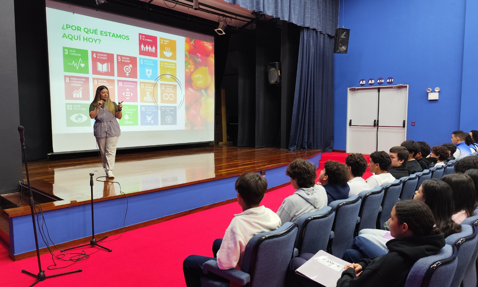 La presidenta de la Fundación Banco Alimentar de Venezuela, Marianela Fernandes, visitó nuestras instalaciones y compartió con los estudiantes de 4to año una charla sobre la importancia de reducir el desperdicio de alimentos y promover un consumo responsable.